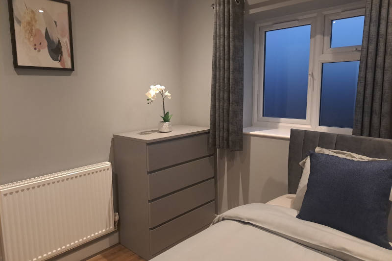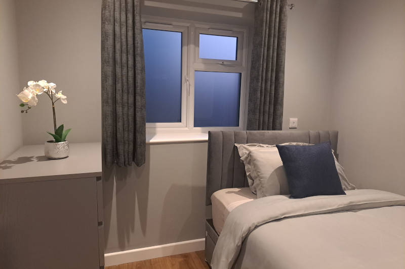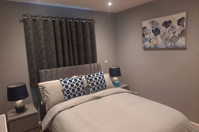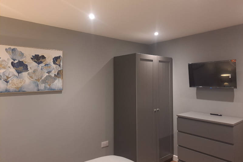 This room is warm and welcoming measuring 108sq.ft, a comfortable double bed. It has a spacious wardrobe with clothes hangers, lots of storage space, Iron and ironing board, hairdryer, flat screen TV and black out curtains.